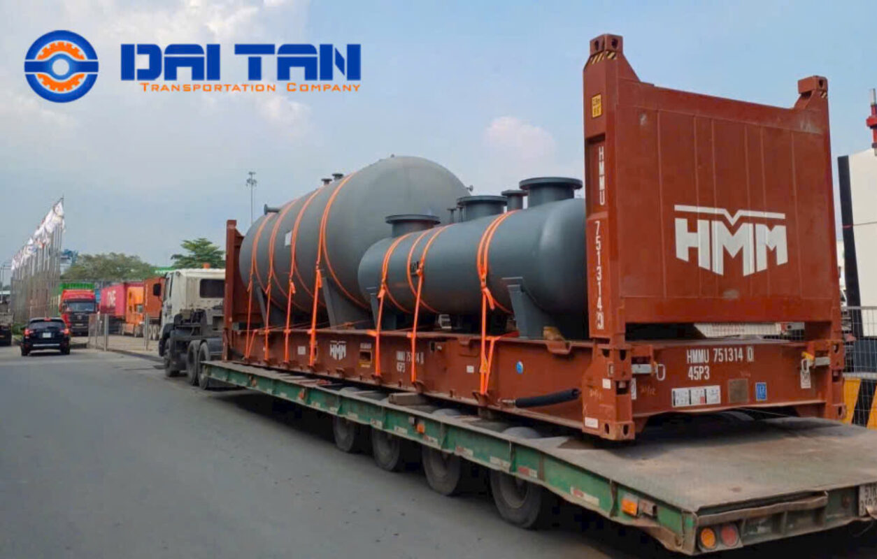 Áp dụng cho máy móc công nghiệp, thiết bị xây dựng, kết cấu thép có tải trọng và kích thước lớn. Phương thức này cần xe chuyên dụng và phương án vận chuyển riêng để đảm bảo an toàn và đúng quy định giao thông.